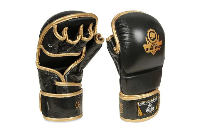 MMA a tréninkové rukavice DBX BUSHIDO ARM-2011d jsou vyrobeny z přírodní, hovězí kůže, vyplněny jsou vysokou vrstvou pěny, která dokonale pohlcuje nárazy. Díky otevřené vnitřní straně vám rukavice umožňují zachovat přilnavost a ruka dokonale větrá. Navíc je rukavice vybavena ochranným překryvem hřbetu palce a dlouhým, širokým popruhem pro stáhnutí zápěstí, aby se minimalizovalo případné riziko zranění. Vnitřní strana je obšita hladkým materiálem pro snadné nasazení a sundání i během náročného tréninku. Anatomický tvar rukavic zajistí jejich komfortní užívání.
