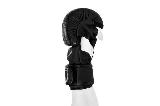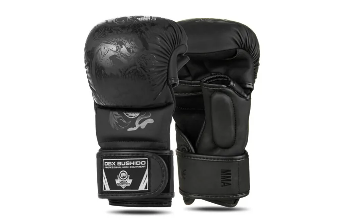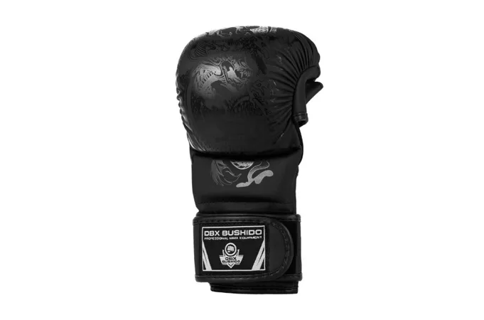 Tréninkové MMA rukavice DBX BUSHIDO "Black Dragon" jsou vyrobeny ze zpevněné, umělé kůže se zvýšenou elasticitou, vyplněny jsou pěnou. Díky otevřené vnitřní straně vám rukavice umožňují zachovat přilnavost a ruka dokonale větrá. Navíc je rukavice vybavena ochranným překryvem hřbetu palce a dlouhým, širokým popruhem pro stáhnutí zápěstí, aby se minimalizovalo případné riziko zranění.