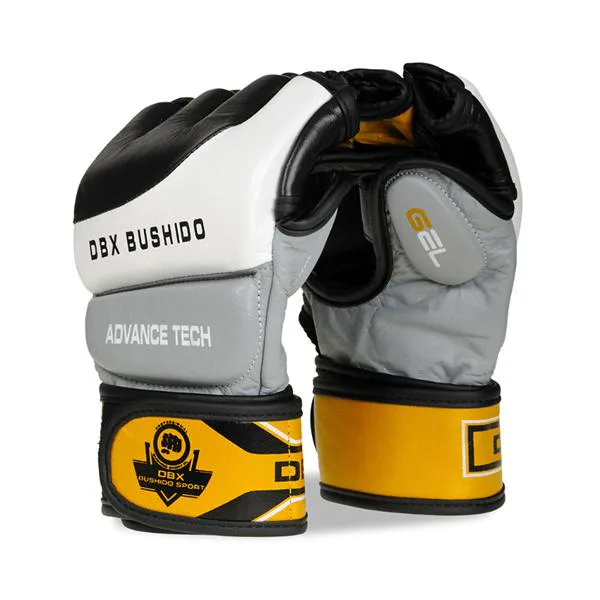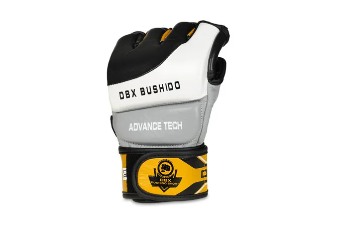 MMA rukavice DBX BUSHIDO e1v2 jsou vyrobeny z kvalitní hovězí kůže. Díky svému skvělému provedení jsou ideální jak pro tréninky bojových umění, tak při každodenním tréninku na boxovacím pytli. Elegantní design a vysoce kvalitní přírodní kůže zaručují trvanlivost a pohodlí při tréninku. Rukavice díky exponovanému technickému řešení vnitřní strany poskytují vynikající příležitost uchopit protihráče. Vnitřní strana rukavice je lemována hladkým materiálem s dostatečným větráním tak a aby se zabránilo vzniku odřenin během tréninku.