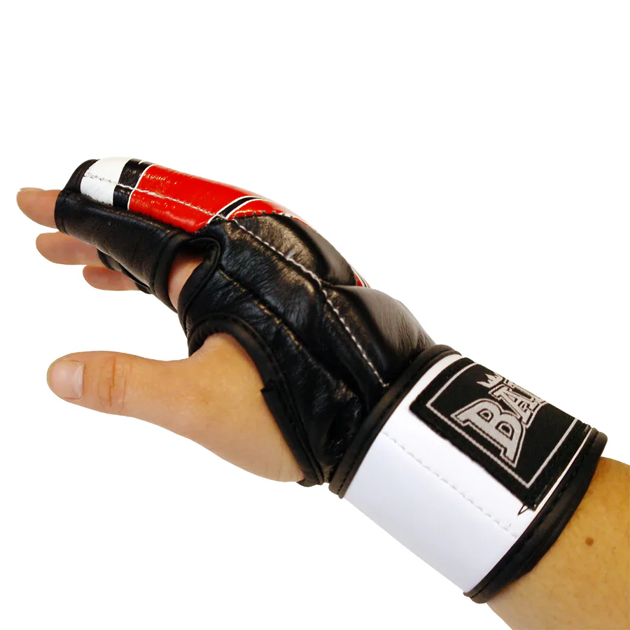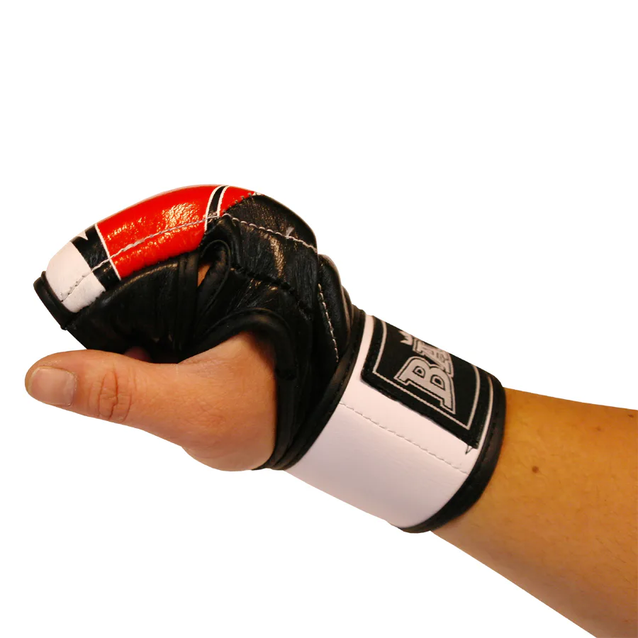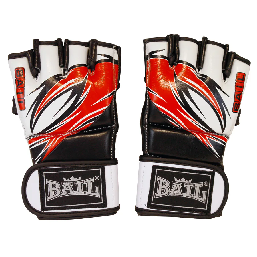 MMA rukavice Red Flame od značky BAIL vynikají svým celokoženým zpracováním s otevřeným palcem jsou určeny jak pro trénink v oblasti MMA (MMA, Grappling, Vale Tudo, Sambo Combat apod.), pro trénink i zápas. Speciálně tvarované vycpávky chrání proti případným zraněním kloubů a prstů. Tvrzené a vytvarované polstrování zajišťuje flexibilitu a nebrání v pohybu. Rukavice mají vyříznutou dlaň, která umožňuje protivníka pevně držet, aniž by ze sevření vyklouzl.