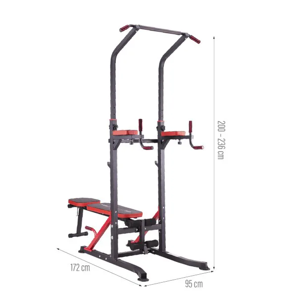 PWL8324 je vyrobena z nejkvalitnějších materiálů. Všechny rukojeti jsou potaženy protiskluzovým materiálem, který zaručuje pevný úchop při cvičení. Hrazdu lze výškově nastavit v rozsahu 200 - 236 cm. Lavička jde sklopit pro úsporu místa.HMS PWL8324 je zkrátka produkt, který nesmí chybět v žádné domácí posilovně.
