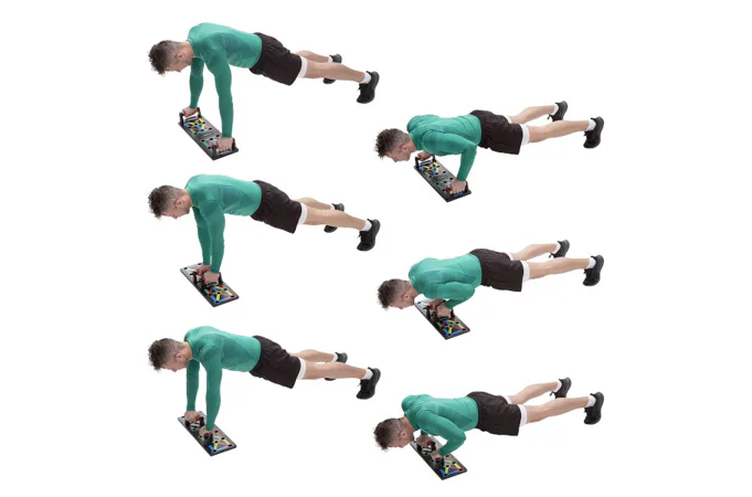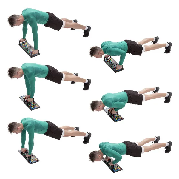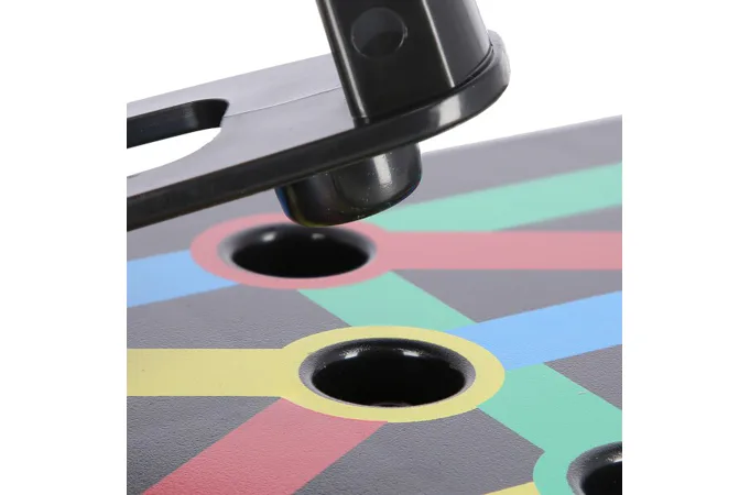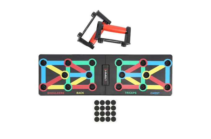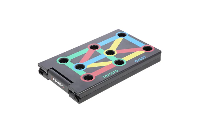 PU12 HMS je multifunkční, skládací deska, která umožňuje variabilní trénink kliků. Deska je symetricky rozdělena na 2 poloviny. PU12 obsahuje 8 párů otvorů pro umístění dodávaných podpěr.