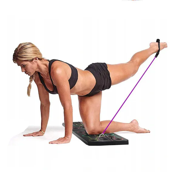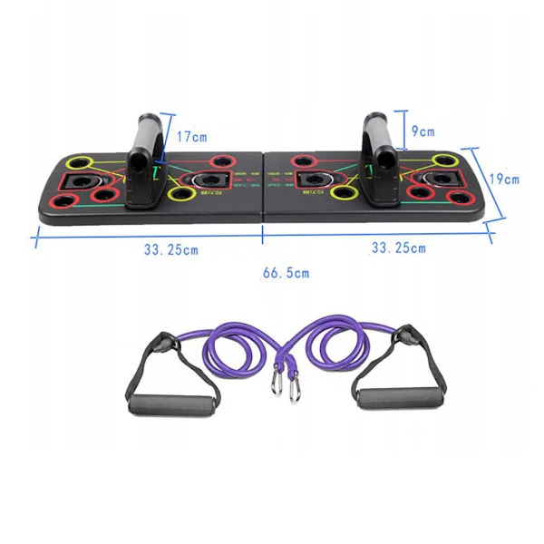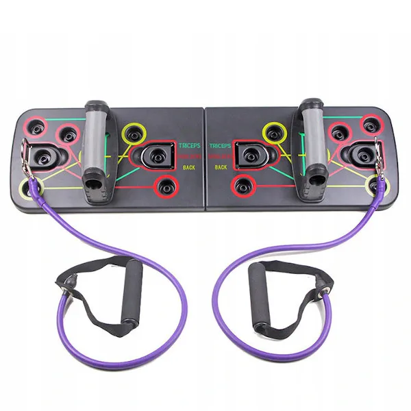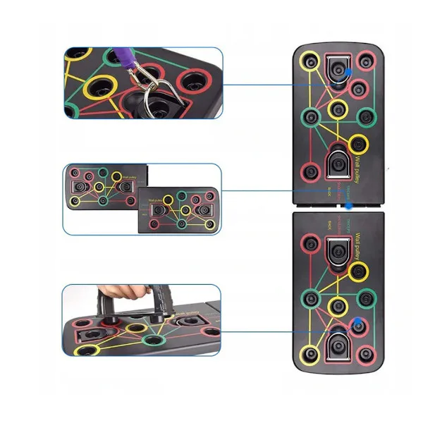 Home MFPUB je multifunkční, skládací deska, která umožňuje variabilní trénink kliků. Deska je symetricky rozdělena na 2 poloviny, kdy každá část obsahuje 5 párů otvorů pro umístění dodávaných podpěr.