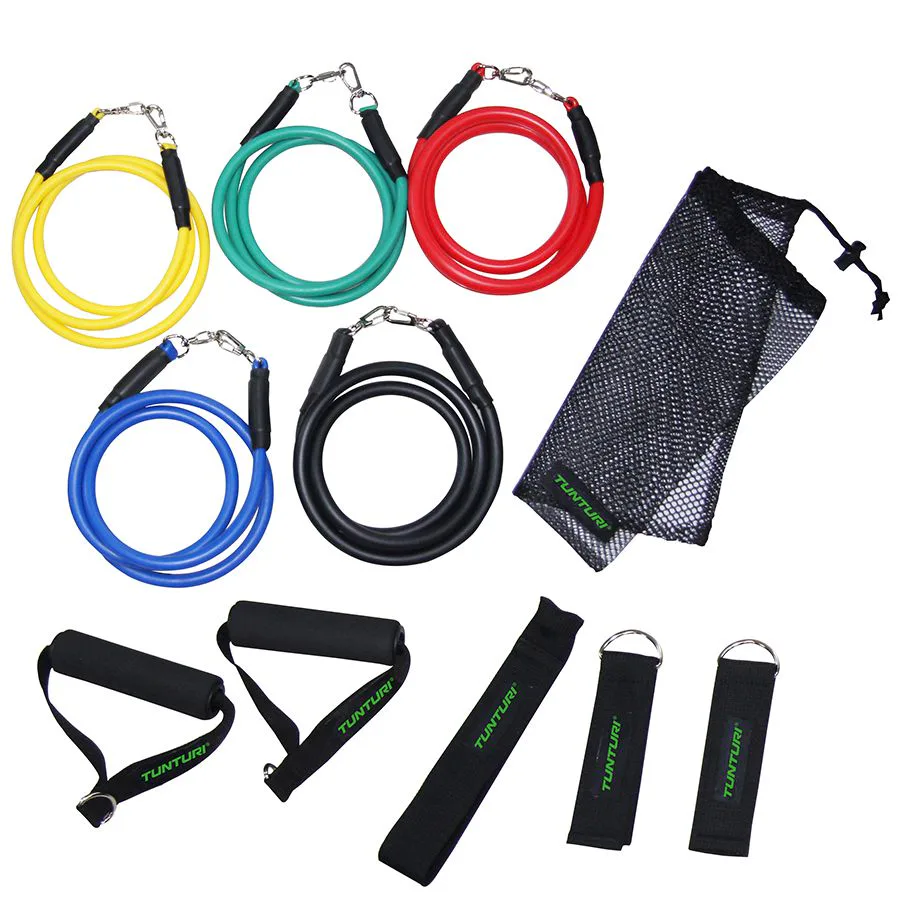 Multifunkční sada s adaptéry a expandery TUNTURI je ideální pro trénink s odporem s možností tuhosti expanderu. Sada je ideální jak pro pokročilé, tak i začátečníky, protože obsahuje 5 různých odporových expanderů s barevným rozlišením. Expandery (120 cm) lze připojit k 2 madlům, 2 kotníkovým adaptérům nebo ke dveřní kotvě . Sadu lze snadno přenášet s přiloženým vakem ze síťoviny.
