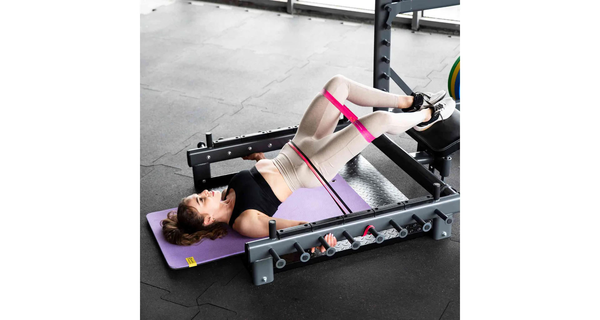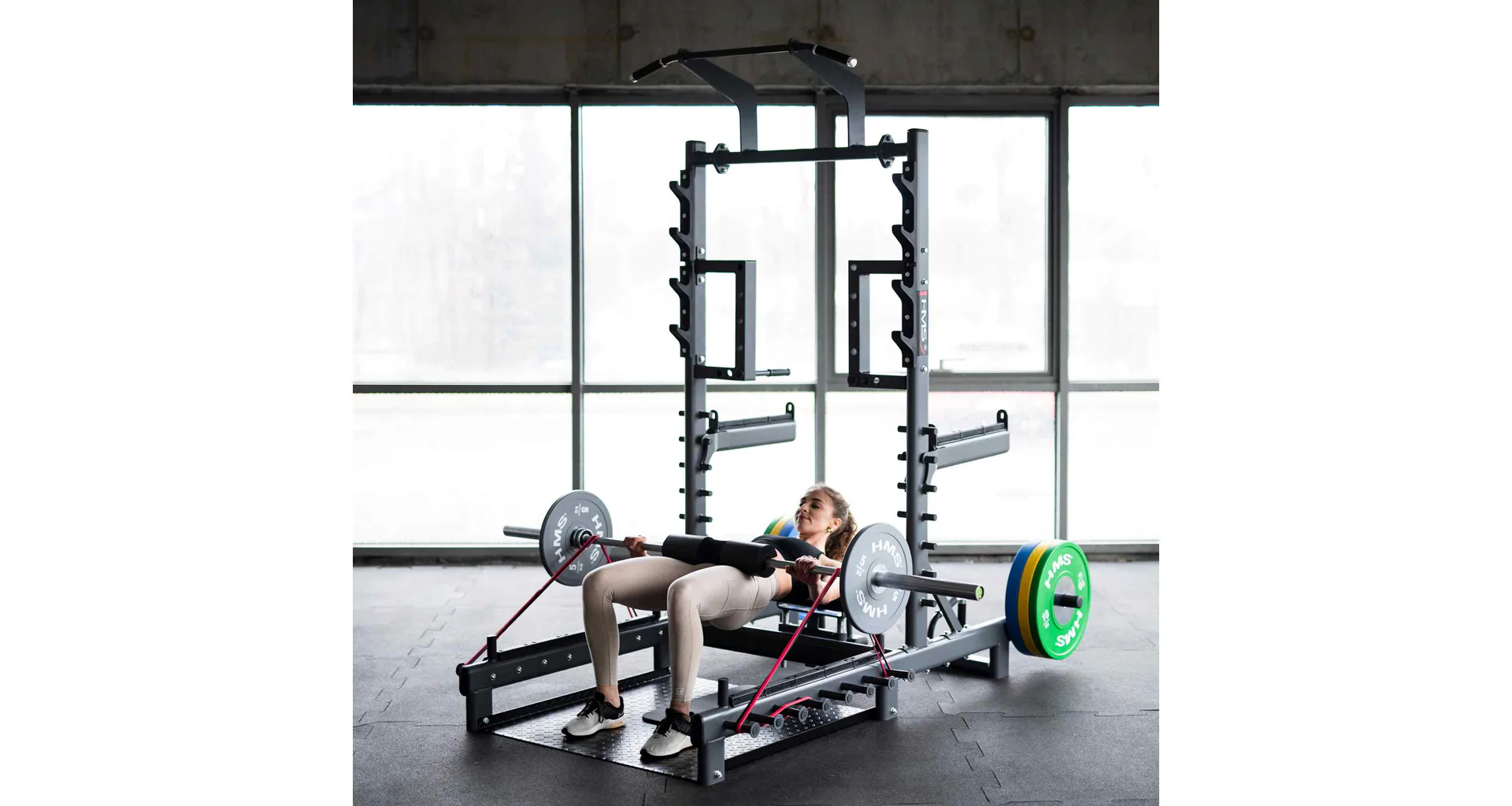 Platforma SMP01 je vybavena protiskluzovou plošinou, která zajišťuje stabilitu během dynamických cviků. Přiložená podložka zvyšuje pohodlí a chrání záda během hip thrustů a dalších cviků prováděných vleže.