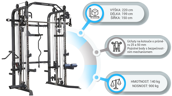 Díky této konstrukci můžete využívat nespočet cviků jako dřepy, bench press, tlaky na prsa, ramena, triceps, biceps, cviky na břišní svaly, shyby a spoustu dalších!