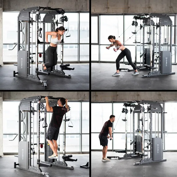 Cyklop 4 je vyroben z vysoce kvalitní oceli, která zajišťuje odolnost a pevnost zařízení. Stroj má robustní základnu, která je zárukou vysoké stability konstrukce, a tak můžete trénovat na plno s maximální jistotou a bez obav, že by Cyklop 4 nestačil Vašim limitům. Plynulý a tichý chod kladek a osy multipressu zajišťují kuličková ložiska. Cyklop 4 má také ocelové výztuhy, které zvyšují bezpečnost během tréninku s velkými váhami.