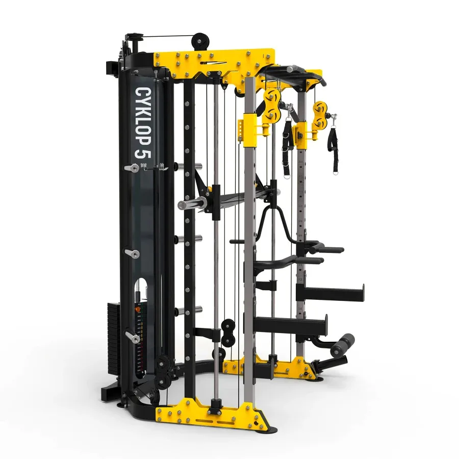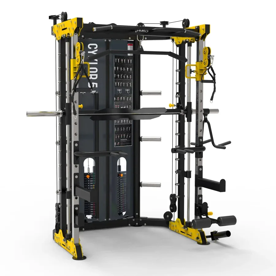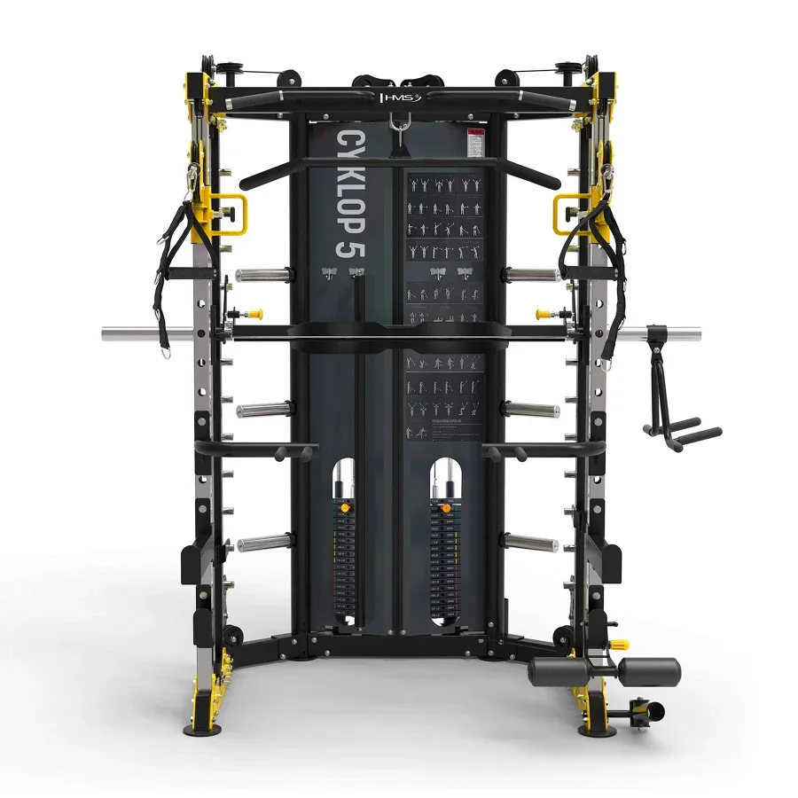HMS CYKLOP 5 je pokročilý tréninkový stroj, který kombinuje funkčnost multipressu s bezpečností a pohodlím při používání. Díky dvěma nezávislým 90 kg sadám závaží, četným adaptérům a příslušenství nabízí Cyklop 5 komplexní trénink celého těla – od svalů horní poloviny těla až po nohy.