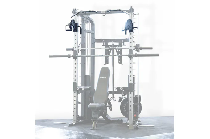 Multipress PRIMAL Monster Rack je navržený tak, aby zastoupil 3 nejpoužívanější stroje v komerčních posilovnách. Na jednom malém prostoru naleznete: multipress, posilovací klec a také výškově nastavitelné protisměrné kladky.
