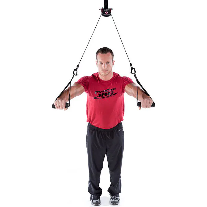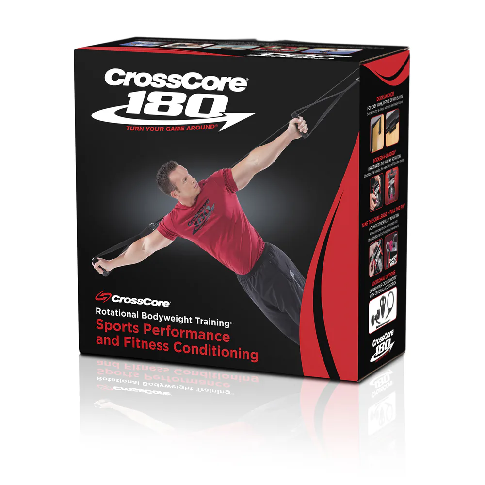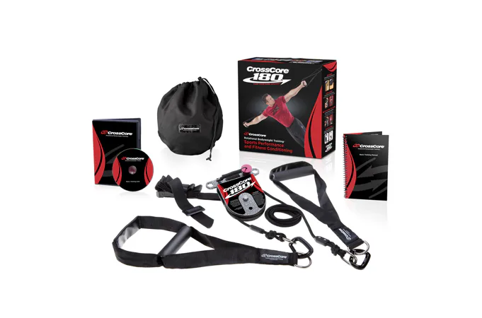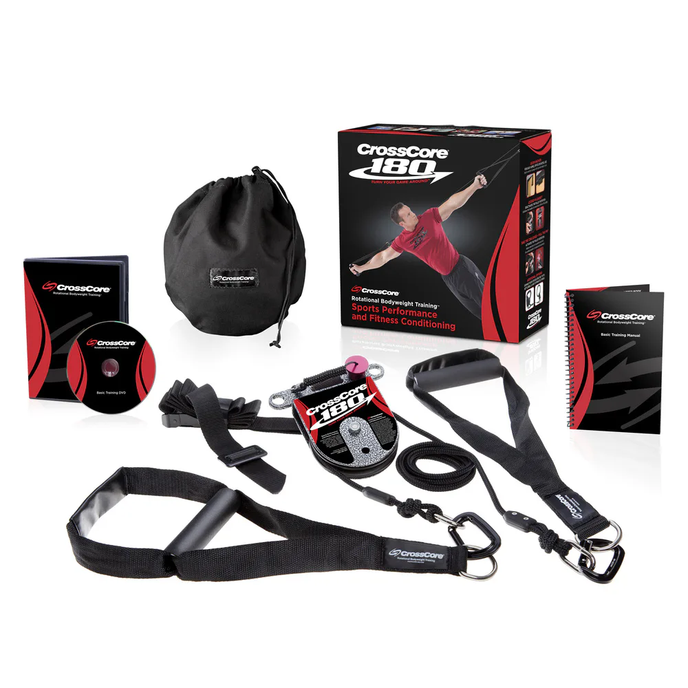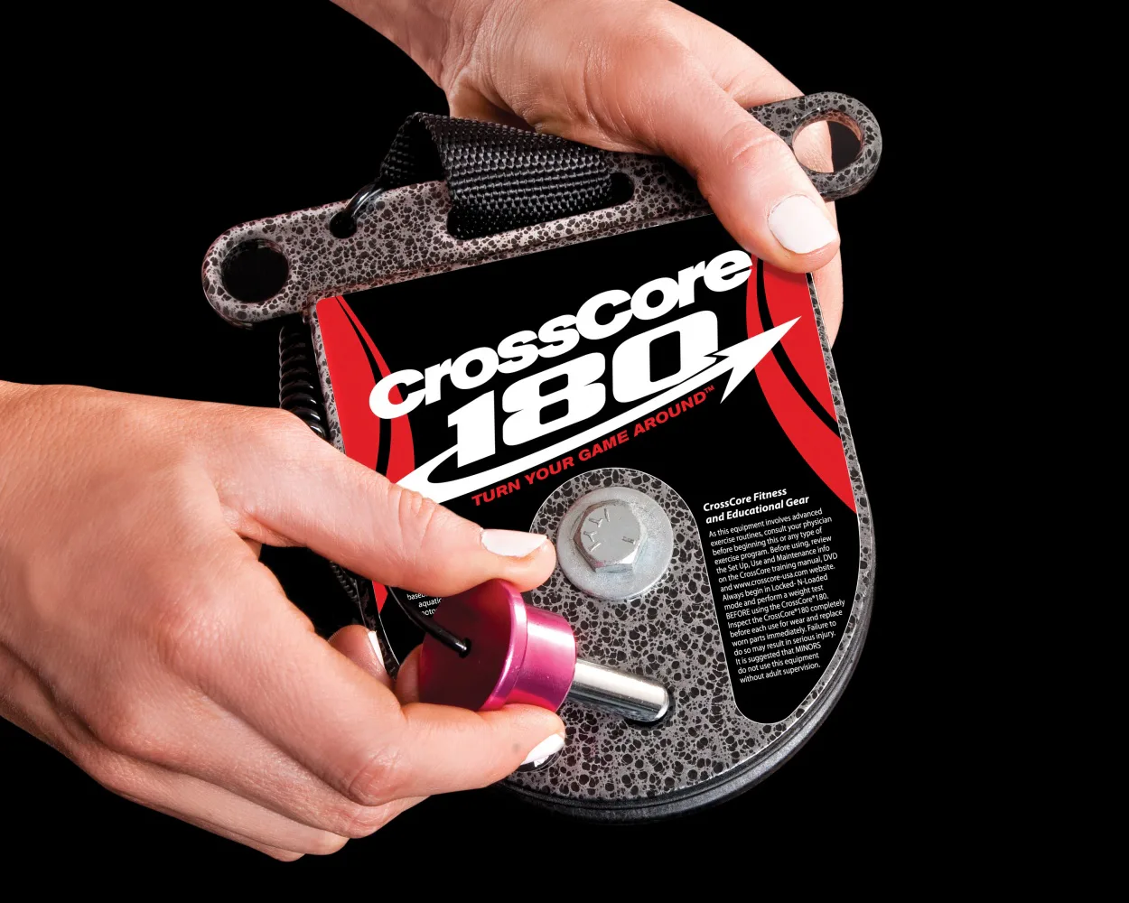 CrossCore180® - Evoluce v posilovacím tréninku. Systém CrossCore180 Rotational Bodyweight Training™ vzhledem ke své vysoké kvalitě a možnosti použít jej prakticky kdekoliv představuje jediné vybavení pro trénink využívající vlastní tělesnou hmotnost svého druhu, který je vybaven patentovanou uzamykací a odemykací kladkou. Uzamčení kola pomocí magnetického kolíku skvěle stabilizuje cviky s dalšími produkty na bázi popruhů. VYTÁHNĚTE KOLÍK a rozšiřte všechna posilovací cvičení, která jste si zamilovali, o rotaci a mnohem širší rozsah pohybu. Funkční kladka nabízí i další výhody. CrossCore180 rovněž umožňuje provádět přímé cviky s využitím kladky v momentech, kdy preferujete samostatné izolované pohyby. Možná protizávaží zahrnují kettlebelly, normální činky i pytle s pískem.