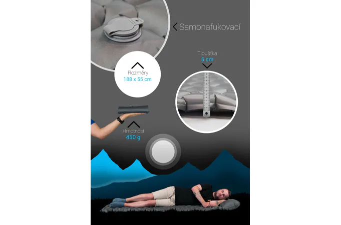 Nafukovací karimatka s nafukovacím polštářkem je velmi úsporný druh karimatky, který je určena pro náročnou turistiku z důvodu skladnosti a nízké hmotnosti.