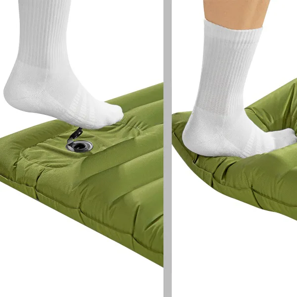 Karimatka má zabudovanou nožní pumpu, která karimatku velmi rychle napumpuje. NC4101 stačí položit na zem, otevřít černý ventil a zavřít šedý ventil. Poté nohou svižně sešlapujte pumpu (v oblasti černého ventilu). Pohyby by měly být rychlé a krátké. Doslova jedna minuta stačí k tomu, aby byla podložka připravena k použití! Jakmile podložka dosáhne správné úrovně nafouknutí, uzavřete černý ventil. Podložka NC4101 dosahuje při plném nafouknutí úctyhodné tloušťky 10 cm, což zaručuje pohodlný odpočinek a spánek i těm nejnáročnějším uživatelům.