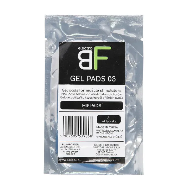 Gelové polštářky k EMS stimulátorům Gel Pads 03 jsou náhradní gelové "vložky", které nahrazují již vysloužilé polštářky, které přestávají lepit. Rozměr Gel Pads 03 se ideálně hodí k produktům ABS Master Pro Hip a Electro BF Hip.