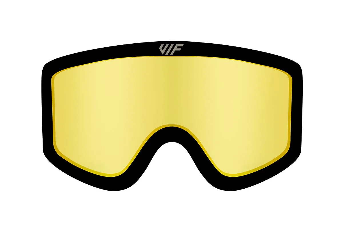Žlutý rozjasňující zorník VIF Yellow pro lyžařské a snowboardové brýle VIF je kategorie S0, má tedy maximální světelnou propustnost a je vhodný na dny, kdy sněží nebo je hustá mlha. Samozřejmostí je UV400 a hydrofobní filtr, díky kterému se brýle nezamlžují za žádného počasí.