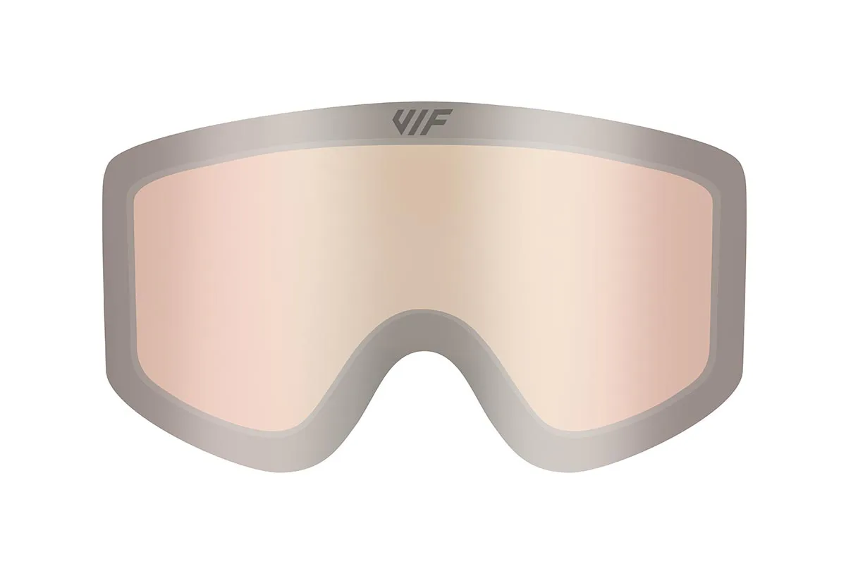 Krásný růžovo-stříbrný zorník VIF pro lyžařské a snowboardové brýle VIF je kategorie S2, má tedy univerzální světelnou propustnost a je vhodný na slunečné dny do výšek do 2500 m.n.m. Samozřejmostí je UV400 a hydrofobní filtr, díky kterému se brýle nezamlžují za žádného počasí.