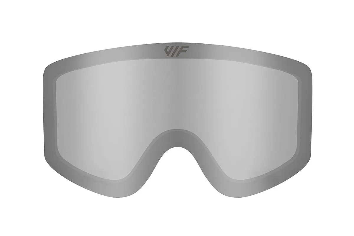 Krásný stříbrný zorník VIF pro lyžařské a snowboardové brýle VIF je kategorie S2, má tedy univerzální světelnou propustnost a je vhodný na slunečné dny do výšek do 2500 m.n.m. Samozřejmostí je UV400 a hydrofobní filtr, díky kterému se brýle nezamlžují za žádného počasí.