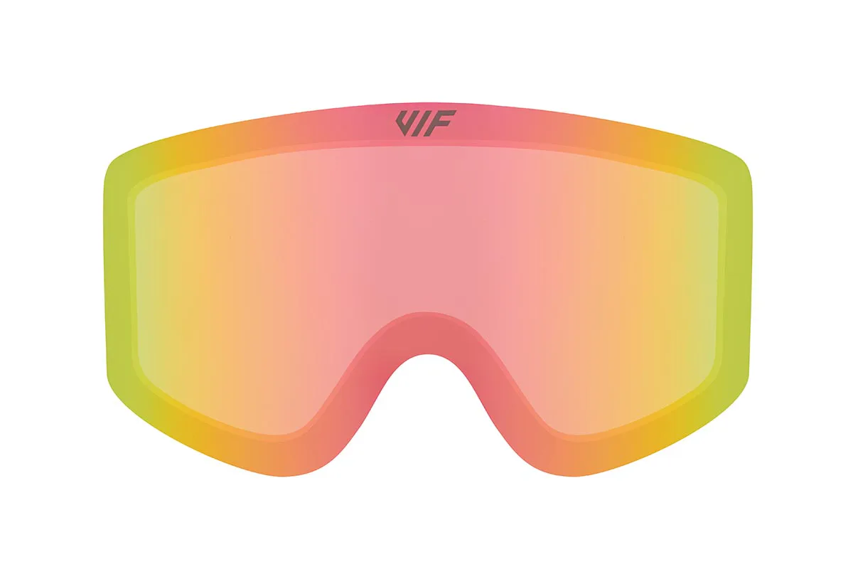 Krásný světle růžový zorník VIF pro lyžařské a snowboardové brýle VIF je kategorie S2, má tedy univerzální světelnou propustnost a je vhodný na slunečné dny do výšek do 2500 m.n.m. Samozřejmostí je UV400 a hydrofobní filtr, díky kterému se brýle nezamlžují za žádného počasí.
