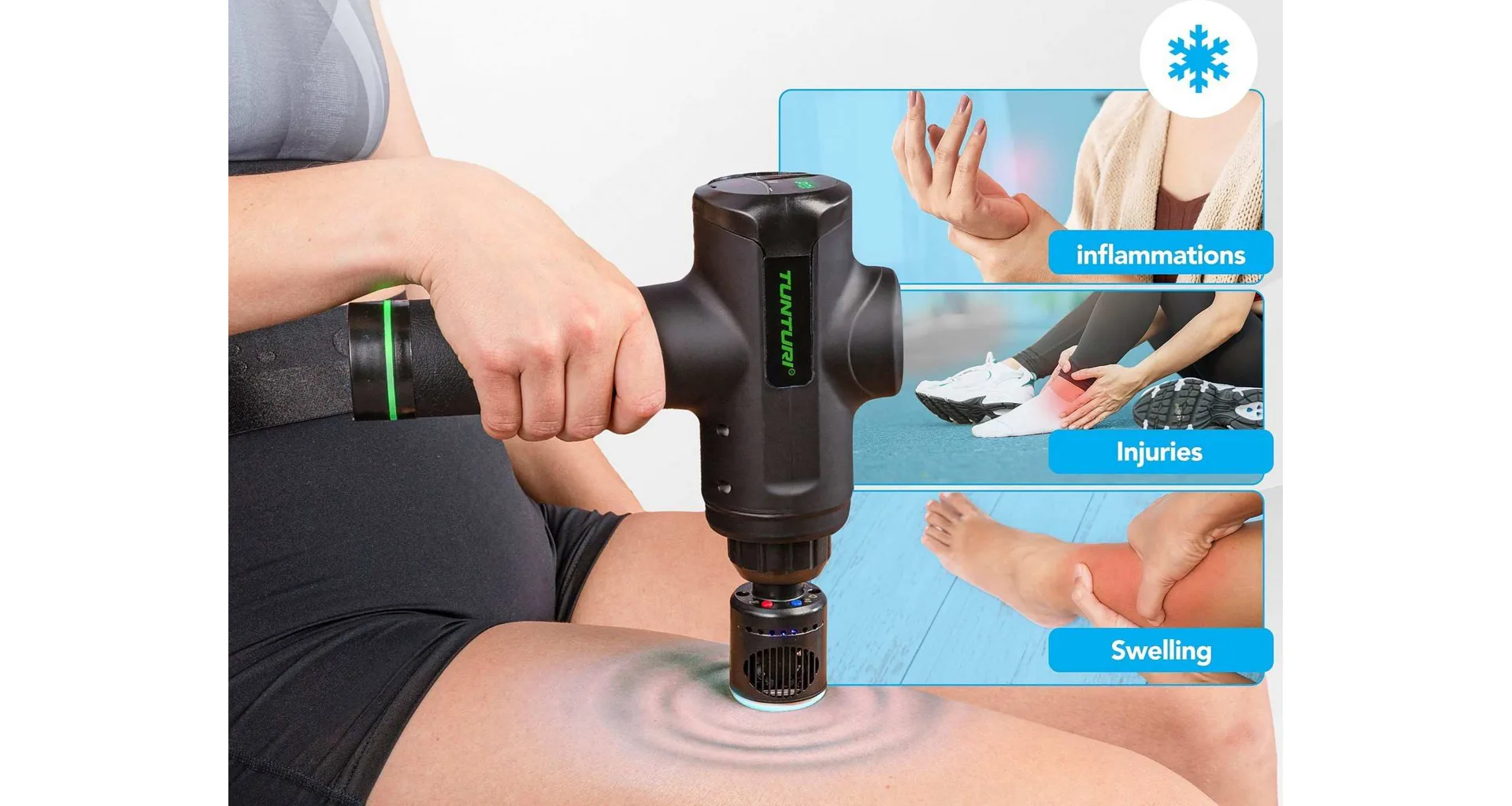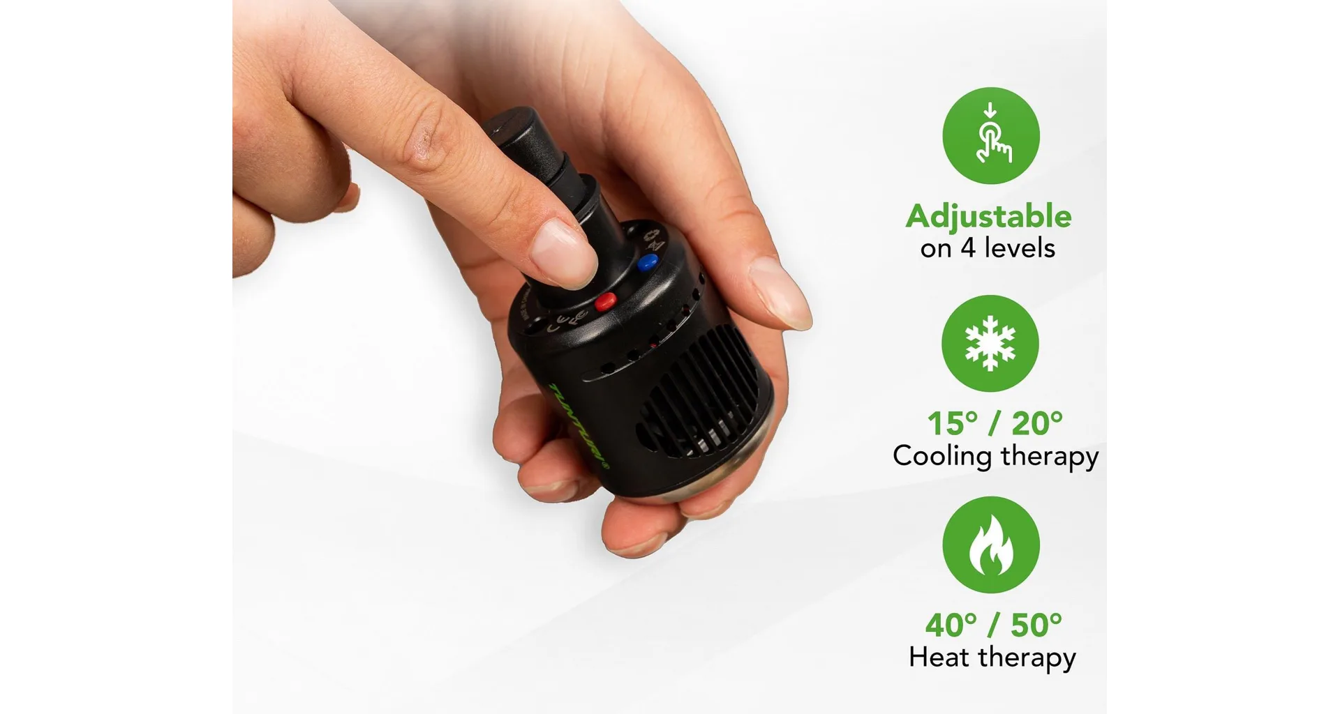 Hlava pro masážní pistoli TUNTURI Heat and Cool je inovativní doplněk, který kombinuje teplou a chladicí terapii pro komplexní péči o vaše svaly. Díky této hlavici můžete svou masážní pistoli proměnit v účinný nástroj na zmírnění bolesti, otoků a svalového napětí. Teplo podporuje krevní oběh, uvolňuje svaly a urychluje regeneraci, zatímco chlad snižuje otoky, záněty a zpomaluje rozšiřování bolesti. Hlavice je kompatibilní s většinou masážních pistolí a nabízí čtyři úrovně teploty: teplo na 40°C nebo 45°C a chlad na 20°C nebo 15°C, přičemž aktuální nastavení je indikováno LED světlem.