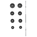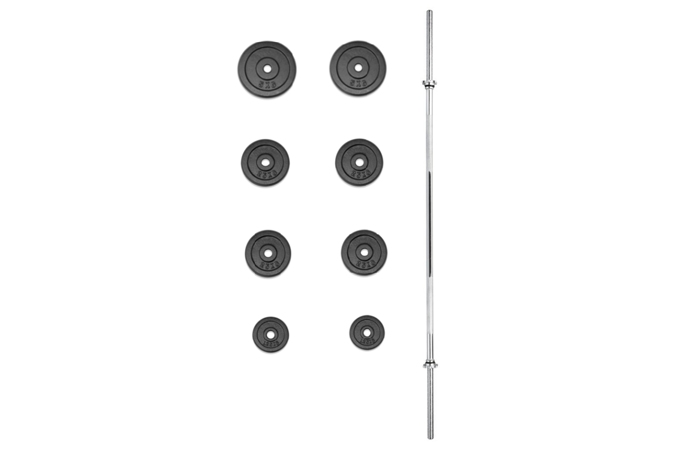 Variabilní činkový komplet sestavený z kvalitních komponentů je vynikajícím doplňkem každé domácí i komerční posilovny. Rozmanitá skladba setu zaručuje komfortní a bezpečný trénink. Součástí tohoto setu je velká obouruční hřídel na činku a sada litinových kotoučů, vše s vrtáním 30 mm (průměr používaný i většinou výrobců posilovacích lavic a strojů). Uvedená váha setu je včetně osy.