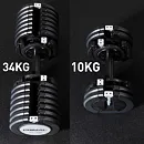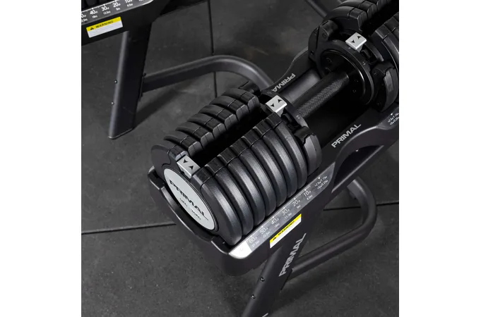 Jednoruční nakládací činka PRIMAL STRENGTH s praktickým řešením úpravy zátěže. Pomocí praktického nakládacího/vykládacího systému nebyla změna hmotnosti nikdy snazší. Vámi požadovanou váhu si můžete velmi jednoduše změnit pomocí posuvníku, kterým vyberete požadovanou hmotnost. K dalšímu přesnějšímu zvýšení, nebo snížení váhy slouží otočný mechanismus.