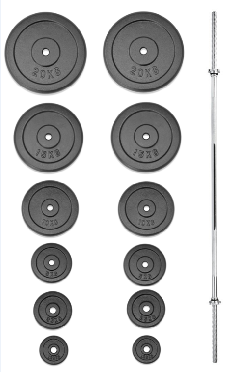 Variabilní činkový komplet sestavený z kvalitních komponentů je vynikajícím doplňkem každé domácí i komerční posilovny. Rozmanitá skladba setu zaručuje komfortní a bezpečný trénink. Součástí tohoto setu je velká obouruční hřídel na činku a sada litinových kotoučů, vše s vrtáním 30 mm (průměr používaný i většinou výrobců posilovacích lavic a strojů). Uvedená váha setu je včetně osy.