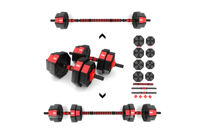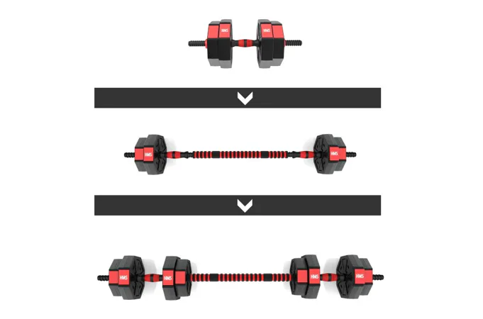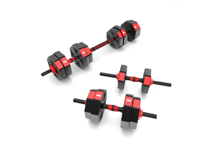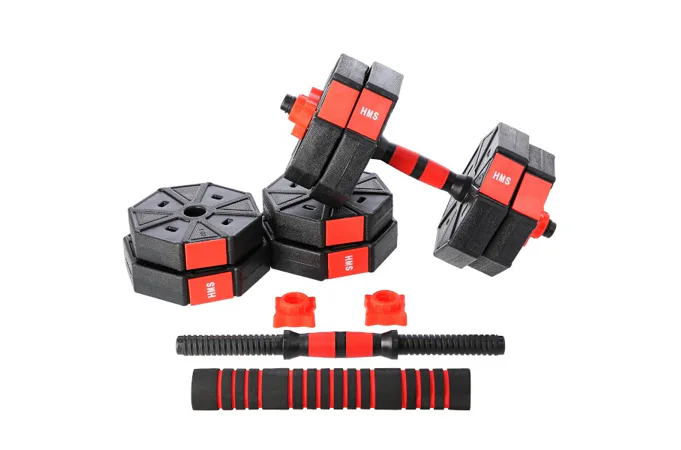 Kompletní nakládací sada dvou jednoručních a jedné obouruční činky o celkové hmotnosti 15 kilogramů, to je HMS SGC15. Nakládací činky patří ke klasickému vybavení každé domácí posilovny.