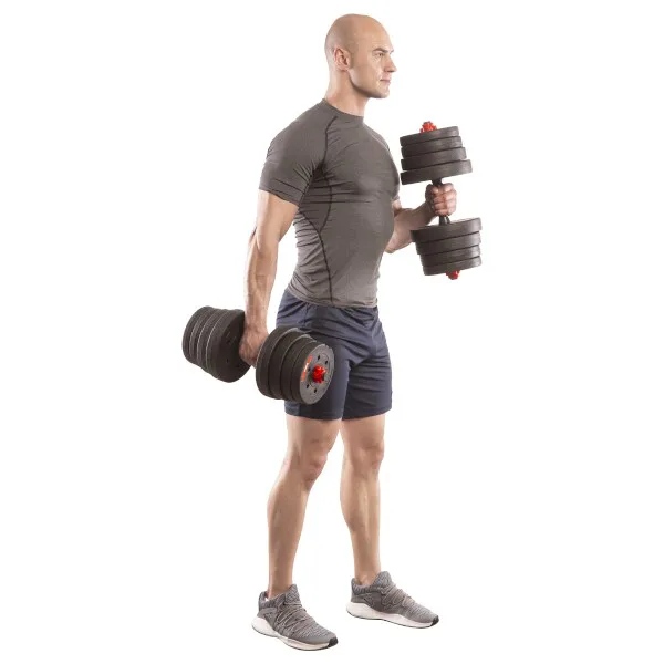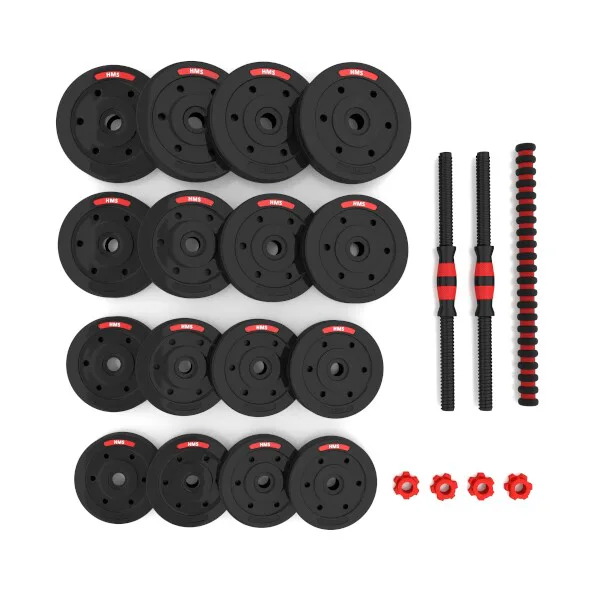 HMS SGP30 kompletní nakládací sada dvou jednoručních a jedné obouruční činky o celkové hmotnosti 30 kilogramů. Nakládací činky patří ke klasickému vybavení každé domácí posilovny.