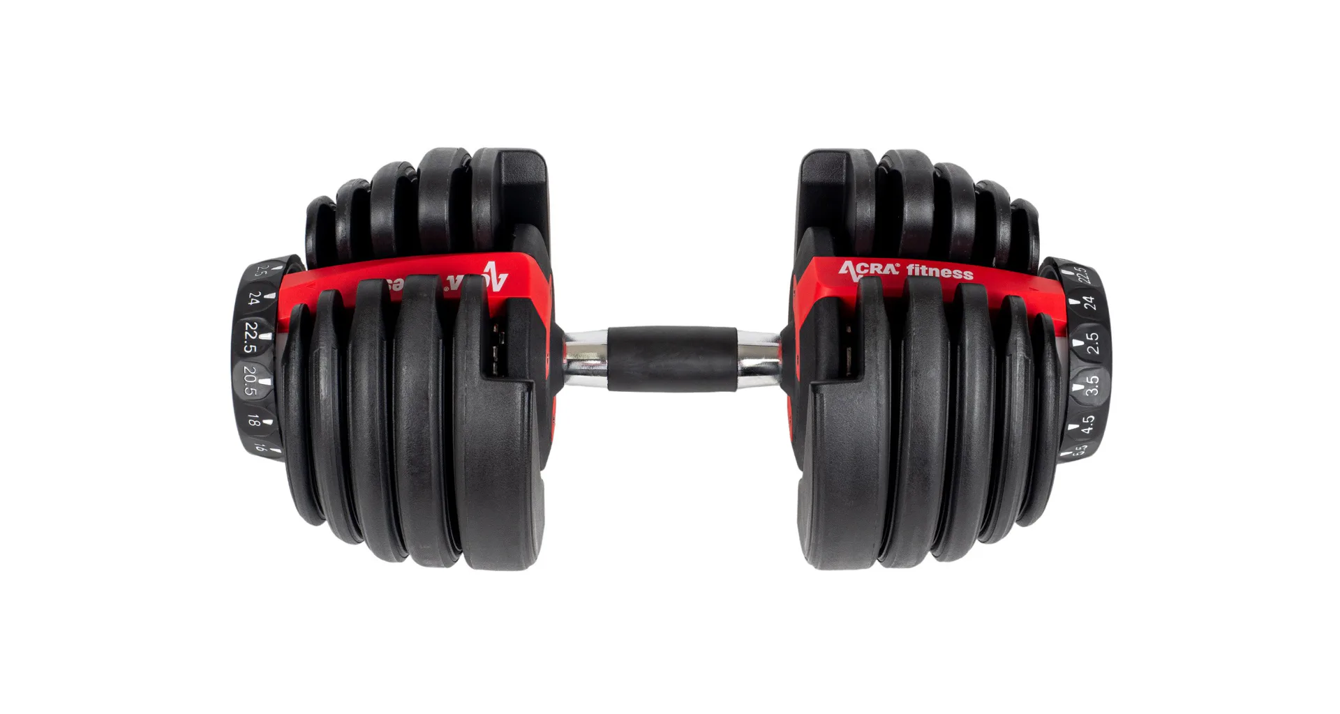 Nastavitelná činka Acra 24kg 15v1 – Nastavitelná jednoruční činka pro domácí trénink. Chcete si vybudovat silné a vyrýsované tělo, ale nemáte čas na posilovnu? S nastavitelnou činkou to zvládnete i doma!