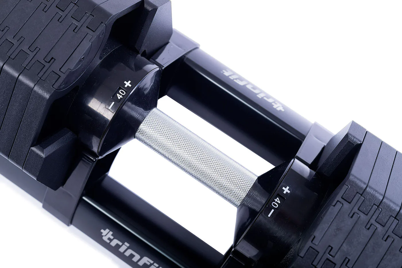 Činky TRINFIT OctaBlock - Nastavitelné činky TRINFIT OctaBlock nabízí revoluční systém úpravy zátěže pomocí otočného kolečka a závaží, které se jednoduše „přicvakne“. S jejich pomocí ušetříte prostor i čas, protože vám nahradí celý stojan činek. Patentovaný blokovací mechanismus zajišťuje bezpečnost při manipulaci a umožňuje změnu váhy pouze tehdy, když jsou činky uloženy v základním stojanu. Díky robustní konstrukci a pevnému mechanismu působí činky stejně stabilně jako klasické pevné činky.