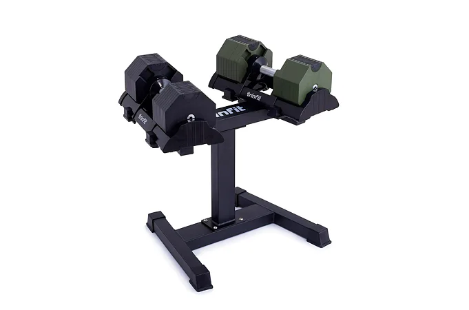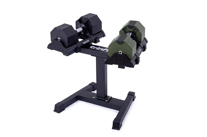 Stojan pro činky TRINFIT OctaBlock - Součástí setu je také robustní a praktický stojan, který zajistí přehledné a bezpečné uložení činek. Díky kompaktním rozměrům se stojan hodí do každé domácí posilovny. Je vyroben z masivní oceli s odolnou povrchovou úpravou a jeho konstrukce je uzpůsobena pro snadné zvedání činek.