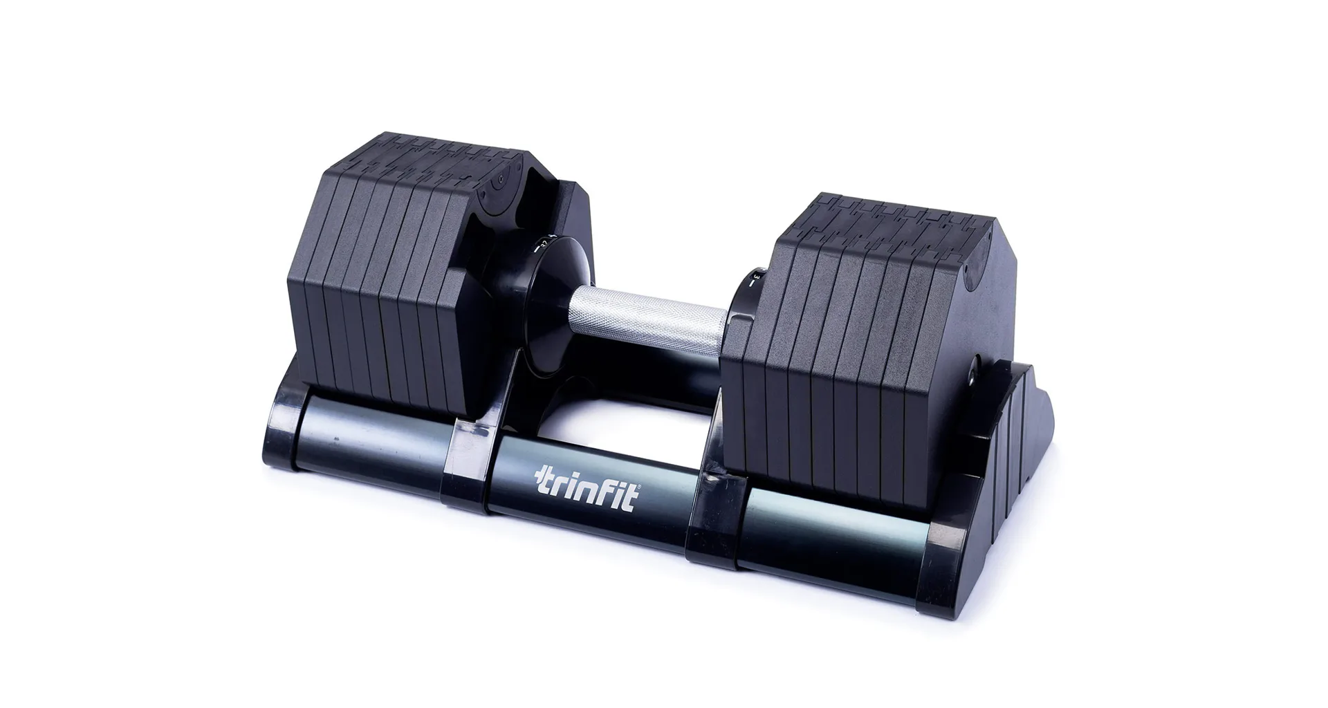 Činky TRINFIT OctaBlock - Nastavitelné činky TRINFIT OctaBlock nabízí revoluční systém úpravy zátěže pomocí otočného kolečka a závaží, které se jednoduše „přicvakne“. S jejich pomocí ušetříte prostor i čas, protože vám nahradí celý stojan činek. Patentovaný blokovací mechanismus zajišťuje bezpečnost při manipulaci a umožňuje změnu váhy pouze tehdy, když jsou činky uloženy v základním stojanu. Díky robustní konstrukci a pevnému mechanismu působí činky stejně stabilně jako klasické pevné činky.