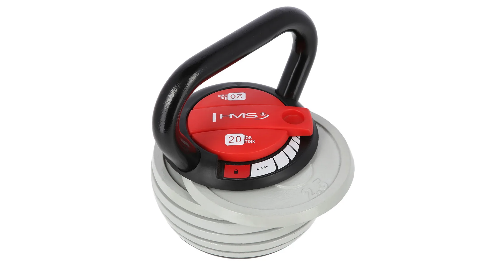 HMS KR20 je ideálním nástrojem pro domácí trénink. KR20 disponuje systémem regulace hmotnosti, kdy po zvednutí a přesunutí páky, můžeme upravit celkovou hmotnost vyjmutím, nebo vložením jednotlivých talířů. Každý ze šesti talířů má hmotnost 2,5 libry a KR20 tak je možno nastavit na hodnotu v rozsahu 2,16 - 3,3 - 4,44 - 5,58 - 6,72 - 7,86 - 9 kilogramů. Talíře jsou vyrobeny o kvalitní, lakované oceli. Nosná část kettlebellu je vyrobena z kombinace oceli a plastu. Průměr madla je 25 milimetrů.