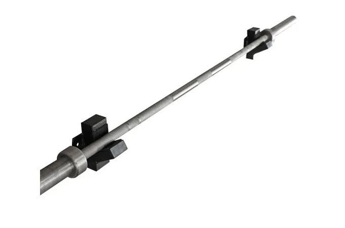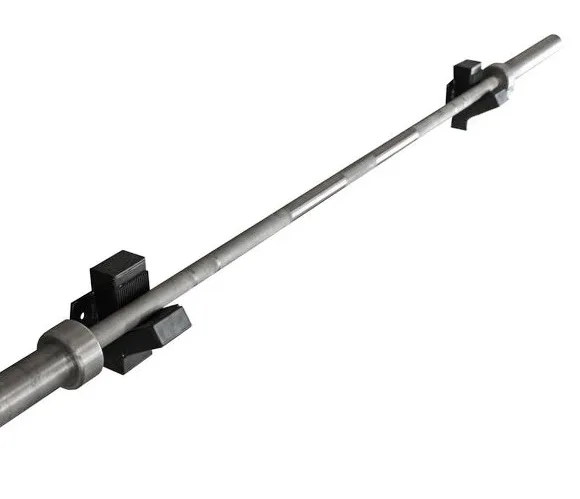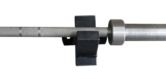 Se širokým háčkem potaženým gumou, který chrání činku před poškrábáním.