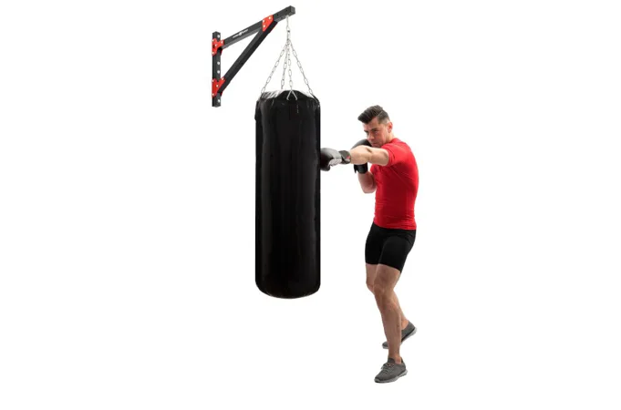Nástěnný držák na boxovací pytel MARBO Sport MH-D205 je vyroben z ocelového profilu 40 x 40 x 2 milimetry a díky tomu je jeho nosnost až 100 kilogramů.