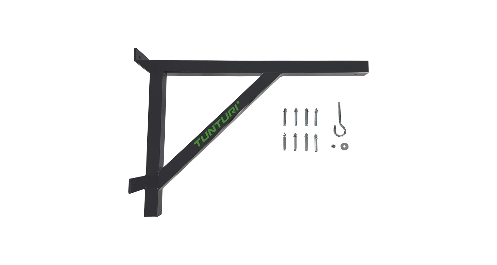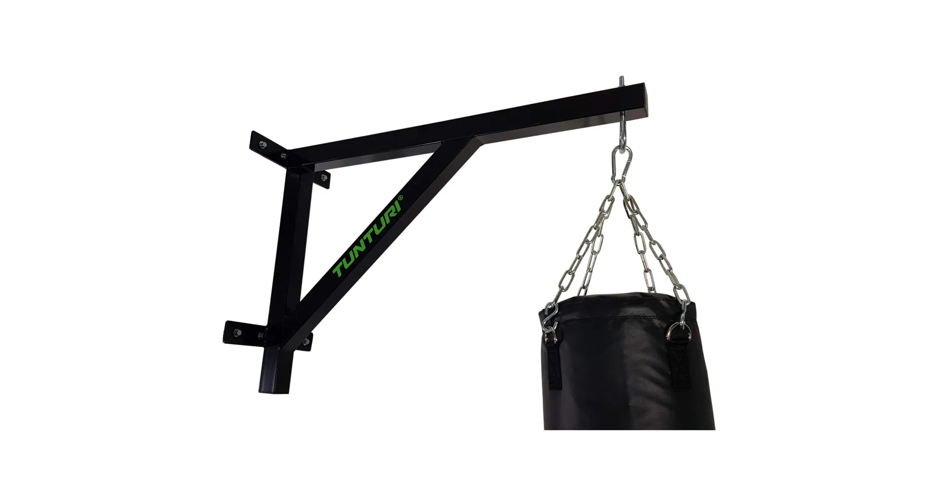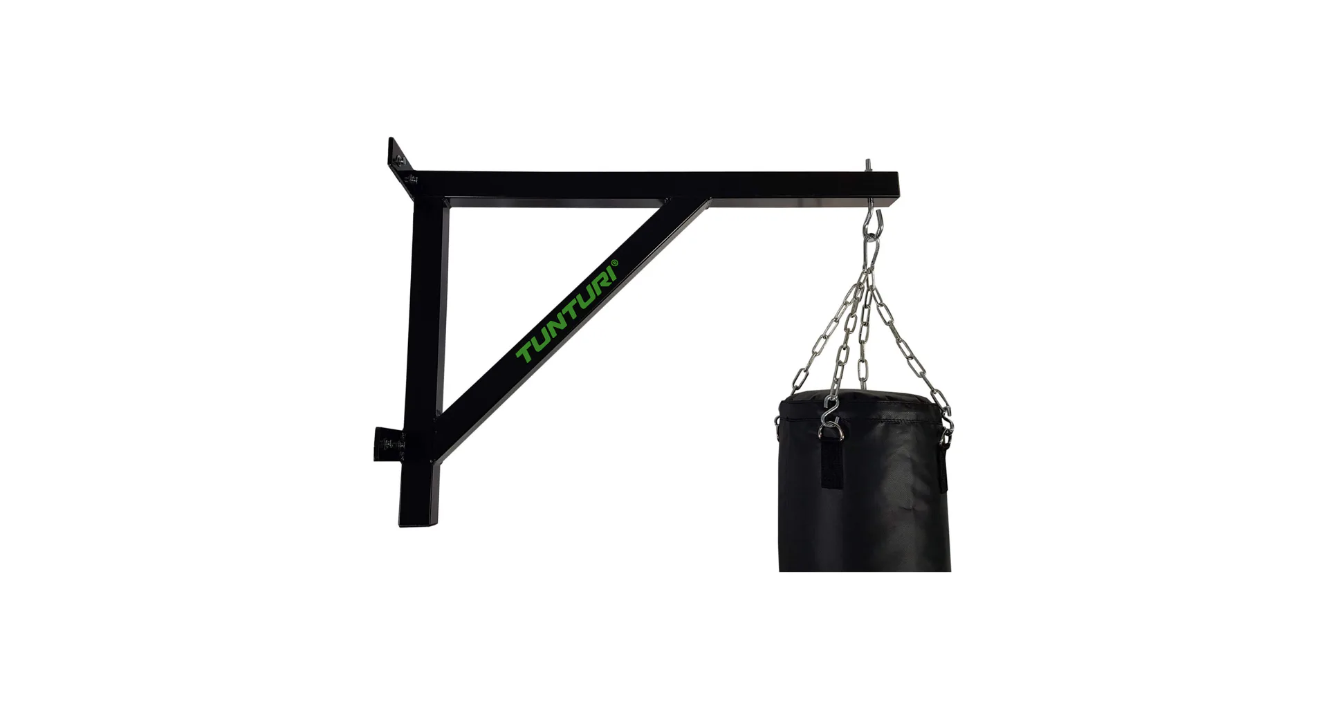 Bezpečný boxerský trénink začíná pevným a spolehlivým upevněním boxovacího pytle. Nemáte prostor pro připevnění boxovacího pytle ke stropu nebo na to strop není vhodný? Pak je řešením nástěnný držák pro boxovací pytel Tunturi! Zavěste držák na zeď pomocí dodaných šroubů a hmoždinek a můžete začít trénovat! Závěsný bod boxovacího pytle je 75 centimetrů od stěny. Takže dostatek prostoru pro boxovací pytel, aby se mohl pohybovat s údery a kopy, které vykonáte.