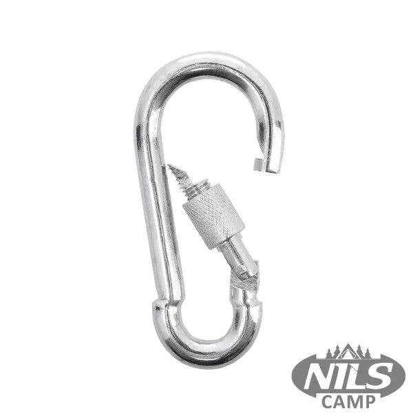 Ocelová karabina NILS Camp NB5042 s šroubovací pojistkou váží pouhých 9 gramů, při zamknuté pojistce má ale nosnost až 500 kilogramů.