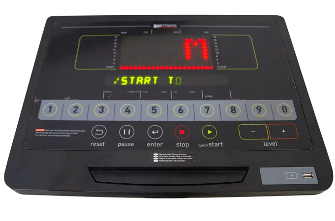 Stroj je vybaven počítačem s LED displejem, který zobrazuje úroveň, čas, vzdálenost, rychlost, kalorie a tepovou frekvenci. Součástí displeje je 11 programů. Tepovou frekvenci je možné měřit buď dlaňovými senzory nebo pomocí hrudního pásu (frekvence 5 kHz). Pro snadnější manipulaci oceníte transportní kolečka.