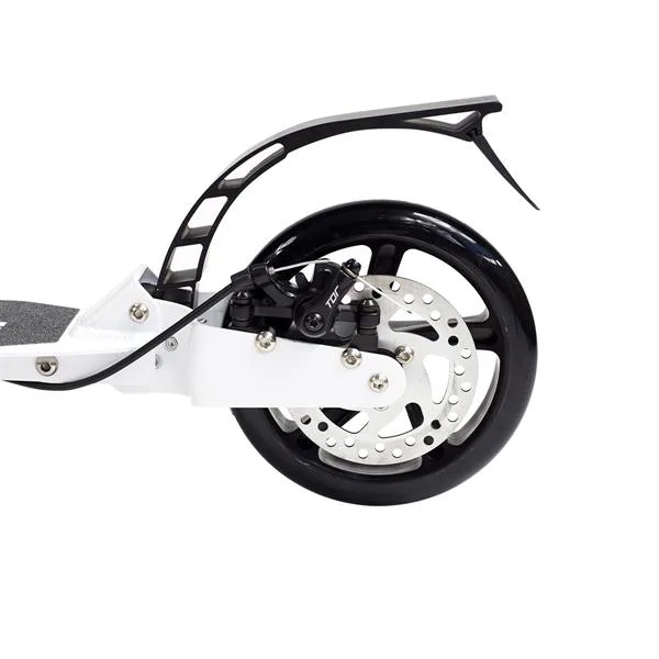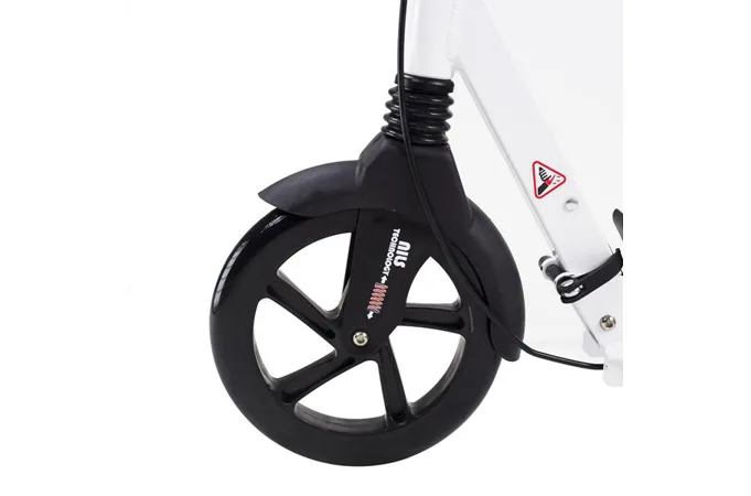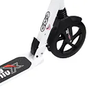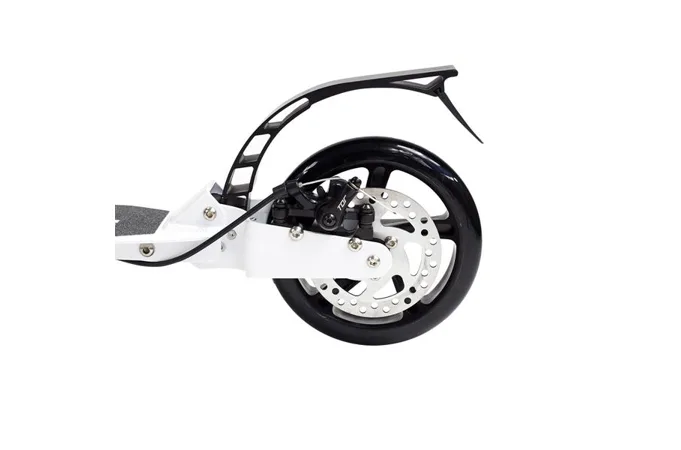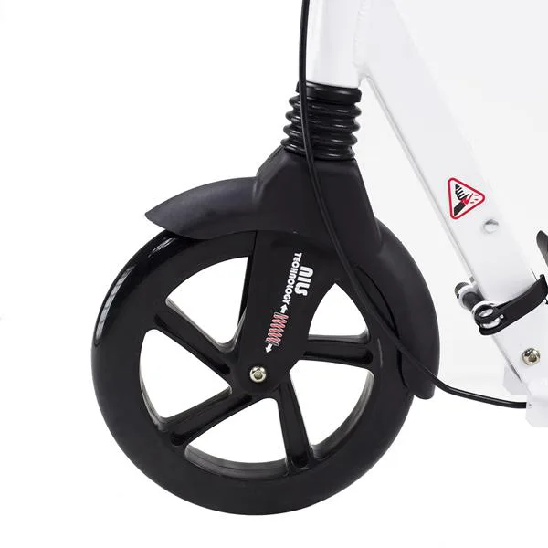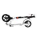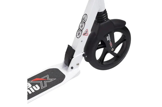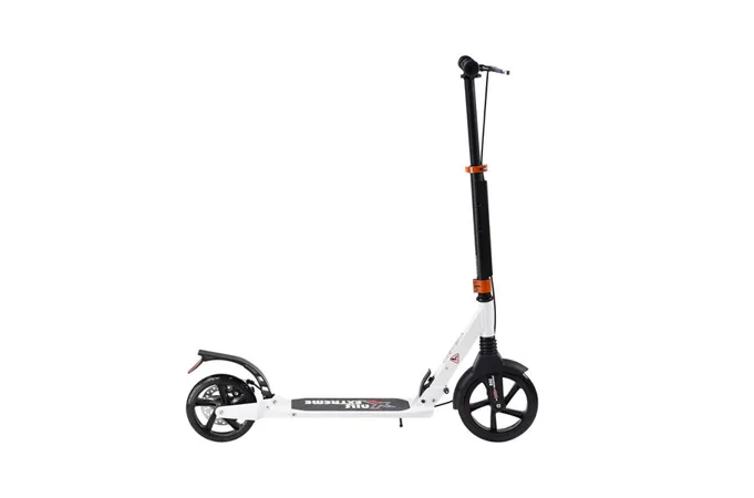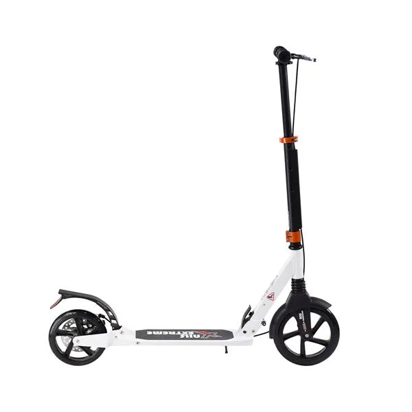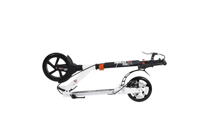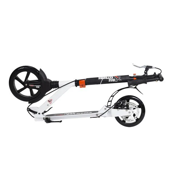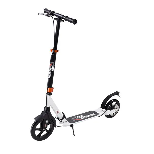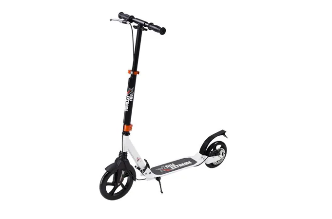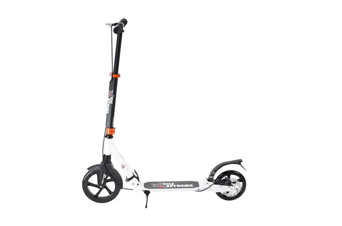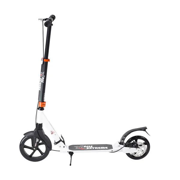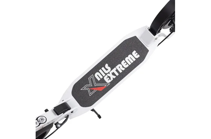 Skládací koloběžka značky NILS EXTREME HA230T je koloběžka určená pro celou rodinu. Charakteristickou vlastností koloběžky jsou dva tlumiče – přední svislý a zadní vodorovný, zajišťující větší komfort během jízdy, minimalizují drncání a pohlcují otřesy. Díky tomu se produkt dobře osvědčí při přejíždění nerovných povrchů. Široký a dlouhý nášlap je pokrytý protiskluzovým gripem zajišťujícím správnou přilnavost boty. Nastavitelná řídítka (až do výše 106 cm) umožňují přizpůsobit koloběžku k výšce dítěte nebo také zajišťují pohodlnou jízdu dospělým osobám. Mimo to má koloběžka 2 rozdílné velikosti koleček a to přední 230 mm a zadní 200 mm. Nově je tento model vybaven také kotoučovou brzdou.