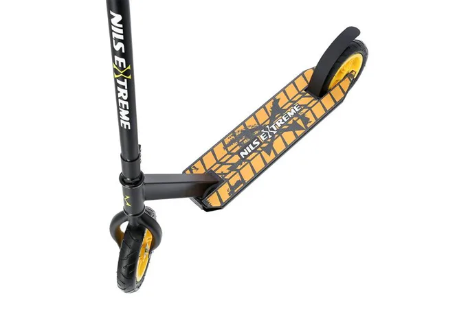 Koloběžka NILS Extreme HC020 je kombinací freestyle a teréní koloběžky. Díky pumpovaným kolečkům můžete triky provádět na růzých typech povrchů.