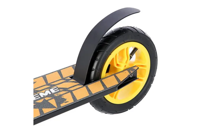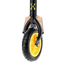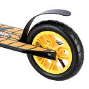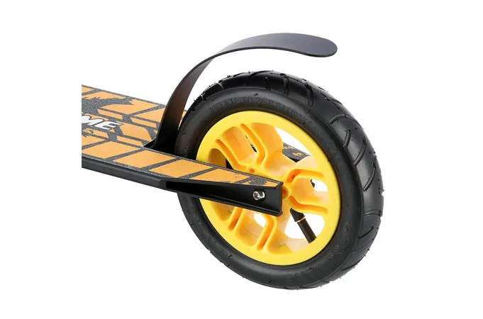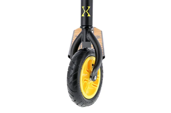 Nylonová kolečka jsou osazeny ložisky ABEC 9 a pumpovací pneumatikou o průměru 200 mm. Model HC020 je vybaven přítlačnou brzdou (blatníkem) na zadním kole. Pevná konstrukce předurčuje koloběžku k provádění freestyle triků, při kterých využijete i možnost protáčení řídítek o 360°.