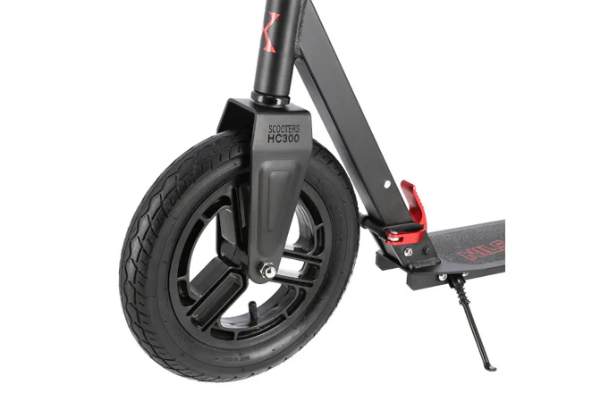 Koloběžka HC300 je vybavena skládacím mechanizmem, kdy po sklopení řídítek můžete s koloběžkou pohodlně cestovat městskou, hromadnou dopravou a nebo si můžete koloběžku uložit do kufru Vašeho vozu. Řídítka jsou zakončena pohodlnými, gumovými gripy pro pevný a pohodlný úchop. Samotná řídítka lze mírně předsadit pro větší jistotu během jízdy. Skládací stojánek je pak už jen pomyslnou "třešničkou na dortu".