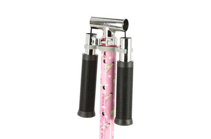 Skládací koloběžka NILS Extreme HD112 je určena pro děti, dorost. HD112 je vyrobena z hliníku, díky kterému je velice trvanlivá a lehká. Nízká hmotnost a možnost složení má také vliv na komofort přenášení, pokud s koloběžkou cestujete autobusem, tramvají, metrem a nebo pokud si ji vezmete s sebou například na dovolenou. Řídítka mají šířku 33 centimetrů a rukojeti jsou opatřeny gumovými gripy, tato kombinace zaručuje pohodlný úchyt a jistotu v řízení i při vysokých rychlostech, kterých HD112 dosahuje díky polyuretanovým kolečkům o průměru 125 mm a ložiskům ABEC 5. Zadní kolečko je opatřebo blatníkem, který Vás udrží v čistotě i v případě, že potřebujete projet louží, nebo Vás zastihne například dešťová přeháňka, blatník zároveň slouží jako nožní brzda, ta umožňuje rychlé zastavení a tím zvyšuje bezpečnost koloběžky.