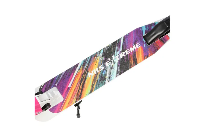 Skládací koloběžka NILS Extreme HD541 je určena především pro děti a dorost. Hlavní předností tohoto modelu jsou polyuretanová kolečka o průměru 145 milimetrů, která zaručují pohodlnou jízdu.