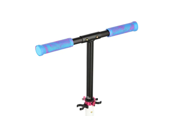 Dalšími výraznými prvky jsou protiskluzová nášlapná plocha, gumová madla a zadní přítlačná brzda. Klademe důraz především na atraktivní vzhled a kvalitní provedení, díky kterému máte jistotu, že kupujete kvalitní koloběžku jenž potěší a zároveň ochrání. Chcete-li pro bezpečnost udělat maximum, nezapomeňte se porozhlédnout po přilbě a chráničích.