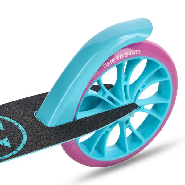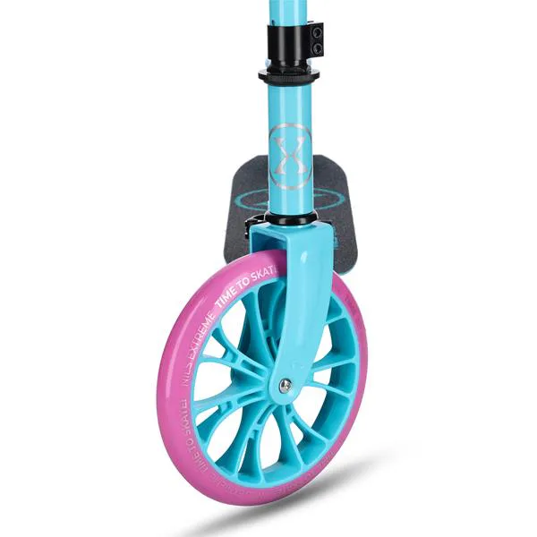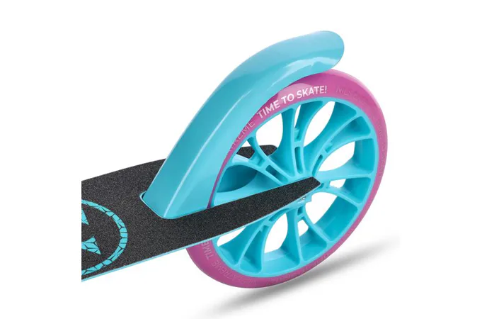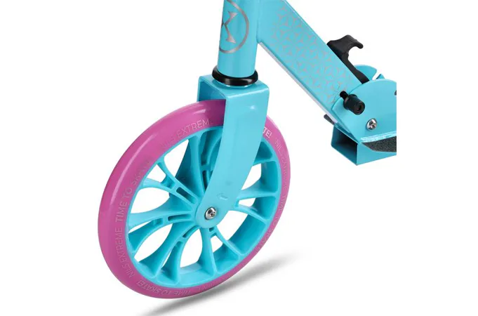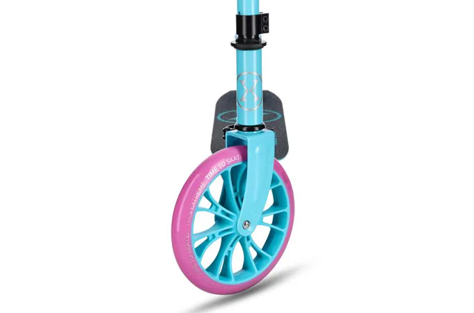 Velká kola o průměru 200 mm mají polypropylenový střed potažený polyuretanem zajišťují dobré tlumení a přilnavost na různých površích – od asfaltu po dlážděné chodníky. Ložiska ABEC-7 minimalizují valivý odpor, což přispívá k plynulé jízdě a většímu komfortu.