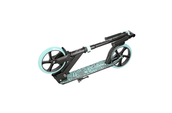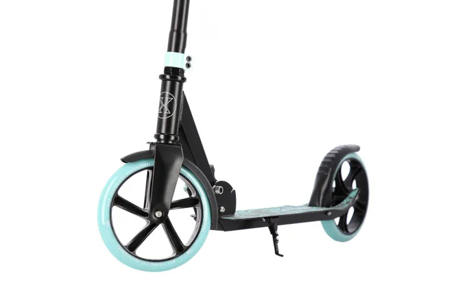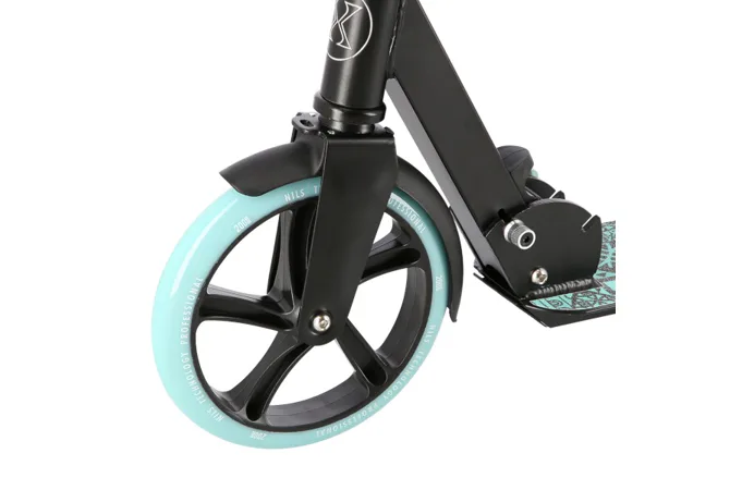 Koloběžka NILS Extreme HM2002 je vhodná pro děti i dospělé. Charakteristikou modelu HM2002 jsou blatníky na předním i zadním kole a výklopný stojánek. Skládací hliníková konstrukce je lehká, pevná a po složení není problém s koloběžkou cestovat například v autobuse, nebo tramvaji. HM2002 se také snadno vejde do kufru osobního automobilu, kde nezabere moc místa a můžete si ji tak vzít s sebou například na dovolenou.Zadní blatník slouží jako přítlačná brzda. Široká řídítka jsou opatřena gumovými rukojeťmi, které zajišťují pevný a pohodlný úchop. 200 milimetrů velká kola jsou osazena ložisky ABEC 7. Tato kombinace zajišťuje rychlou, plynulou a bezpečnou jízdu. Blatník na předním kole a skládací stojánek jsou drobnostmi, které přispívají k maximálnímu možnému komfortu z jízdy a k celkové radosti ze samotného používání modelu MH2002.