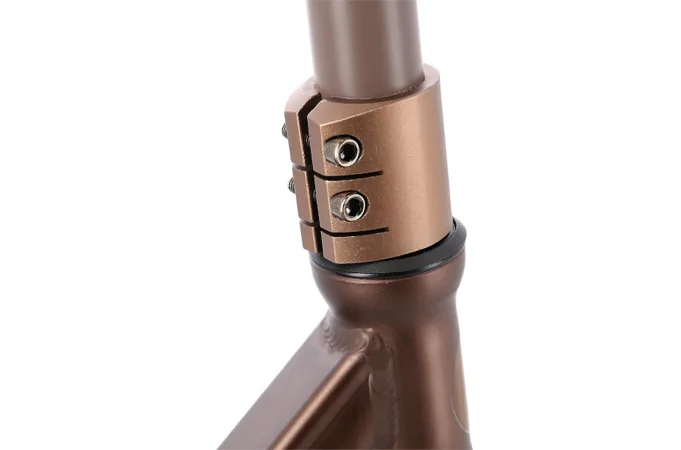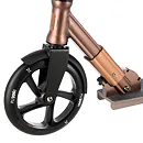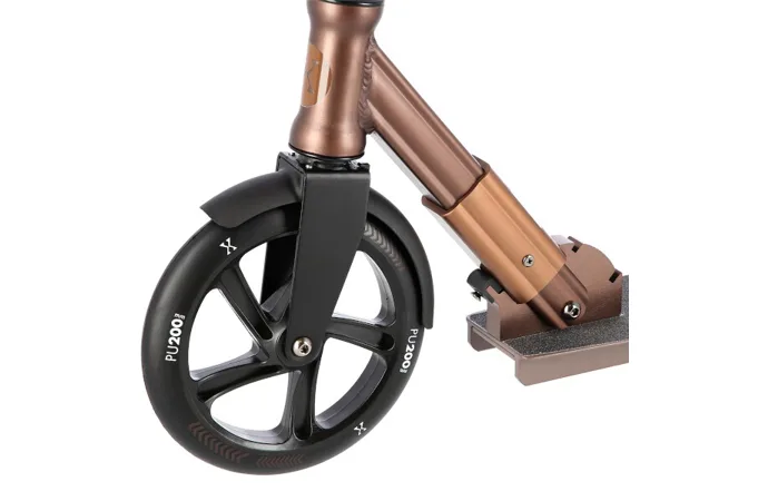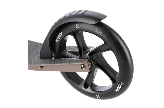Zadní blatník slouží jako přítlačná brzda. Široká řídítka jsou opatřena gumovými rukojeťmi, které zajišťují pevný a pohodlný úchop. 200 milimetrů velká kola jsou osazena ložisky ABEC 9. Tato kombinace zajišťuje rychlou, plynulou a bezpečnou jízdu. Blatník na předním kole a skládací stojánek jsou drobnostmi, které přispívají k maximálnímu možnému komfortu z jízdy a k celkové radosti ze samotného používání modelu MH205.