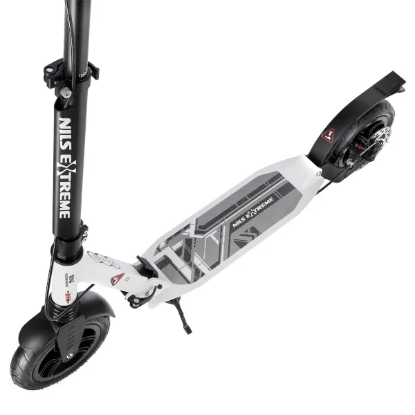 Koloběžka NILS Extreme HM208T je vhodná pro děti i dospělé. Charakteristikou modelu HM208T jsou tlumiče na předním i zadním kole a mechanická, kotoučová brzda. Skládací hliníková konstrukce je lehká, pevná a po složení není problém s koloběžkou cestovat například v autobuse, nebo tramvaji. HM208T se také snadno vejde do kufru osobního automobilu, kde nezabere moc místa a můžete si ji tak vzít s sebou například na dovolenou.