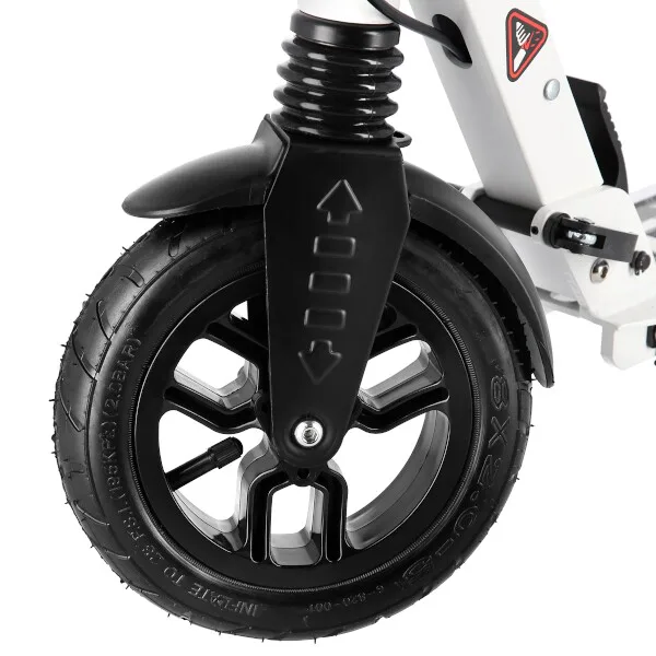 Systém odpružení obou kol zvyšuje jízdní komfort. Tlumiče pohlcují nárazy a jízda po nerovném asfaltu, nebo dlažebních kostkách je příjemnější a tišší. Robustní zadní blatník slouží jako přítlačná brzda, která ještě podtrhuje brzdný účinek kotouče. Samotný kotouč je bržděn jedním pístkem, který je mechanicky ovládaný lankem z páčky na řídítkách, ty jsou opatřeny gumovými rukojeťmi, které zajišťují pevný a pohodlný úchop. Velká kola jsou osazena ložisky ABEC 9 a pumpovanou pneumatikou o průměru 200 milimetrů. Tato kombinace zajišťuje rychlou, plynulou a bezpečnou jízdu. Pumpované pneumatiky navíc spolupracují s tlumiči a také pohlcují povrchové nerovnosti. Blatník na předním kole a skládací stojánek jsou již jen pomyslnou "třešničkou na dortu", která přispívá k maximálnímu možnému komfortu z jízdy a k celkové radosti ze samotného používání modelu MH208T.