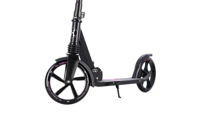 Zadní blatník slouží jako přítlačná brzda. Široká řídítka jsou opatřena gumovými rukojeťmi, které zajišťují pevný a pohodlný úchop. Tlumič na předním kole pohlcuje nerovnosti. 200 milimetrů velká kola jsou osazena ložisky ABEC 7. Tato kombinace zajišťuje rychlou, plynulou a bezpečnou jízdu. Blatník na předním kole a skládací stojánek jsou drobnostmi, které přispívají k maximálnímu možnému komfortu z jízdy a k celkové radosti ze samotného používání modelu MH2090.